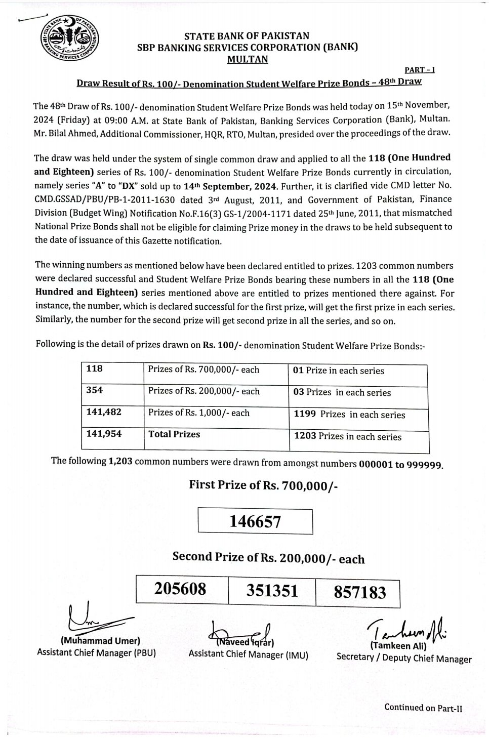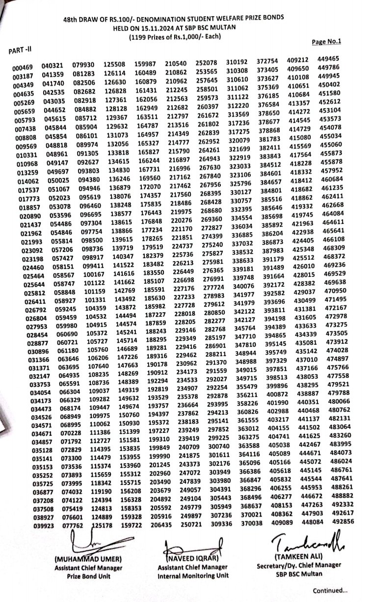 Discover the latest results of the 48th Draw for the Rs. 100/- denomination National Prize Bonds, held on 15th November 2024 in Lahore. Check your prize bond numbers to see if you are among the lucky winners!