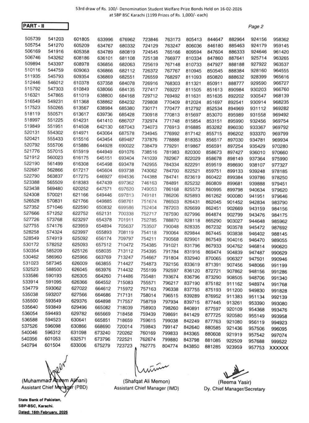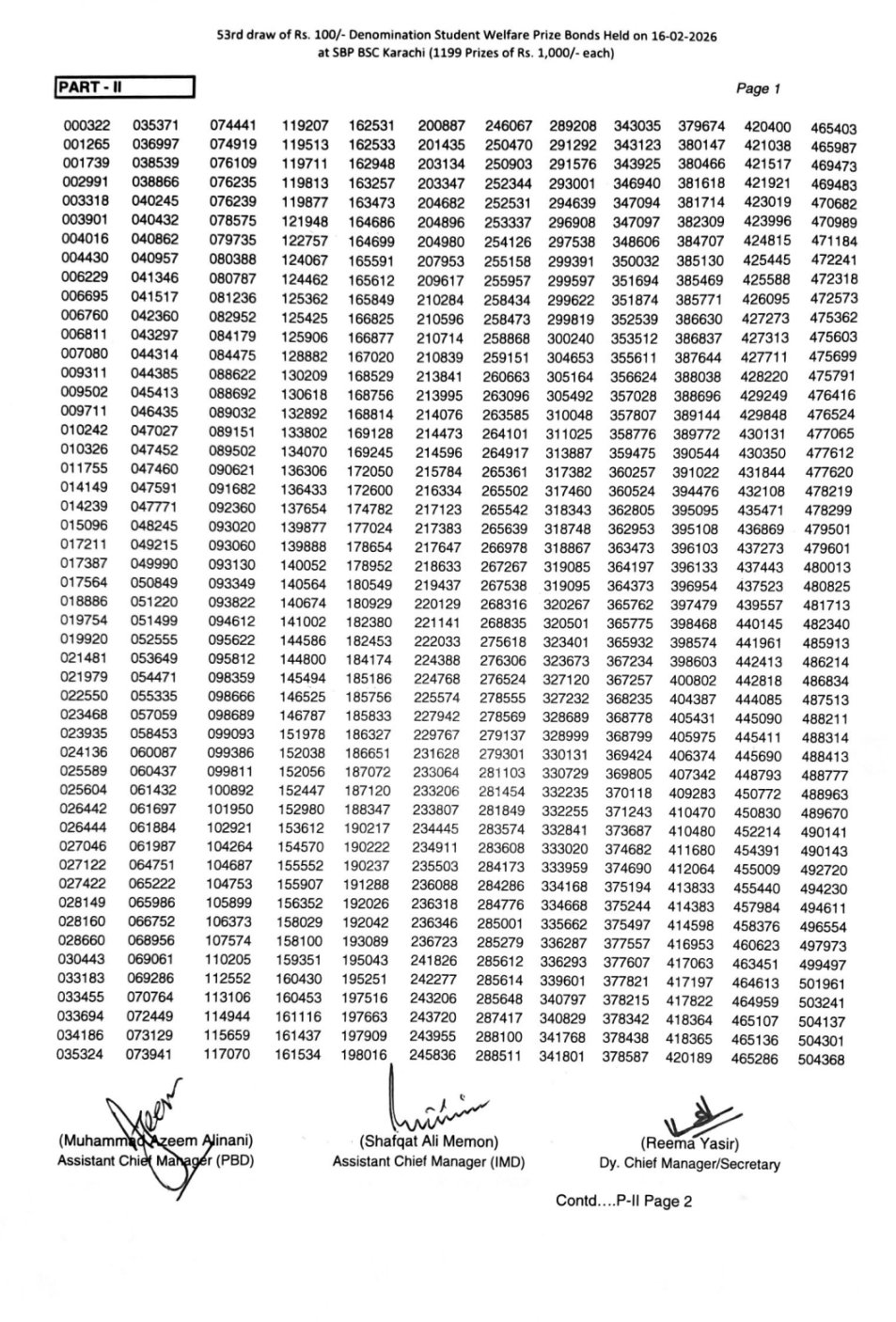 100 Prize Bond Result Today Complete List | Draw #53 Karachi | 16 February 2026