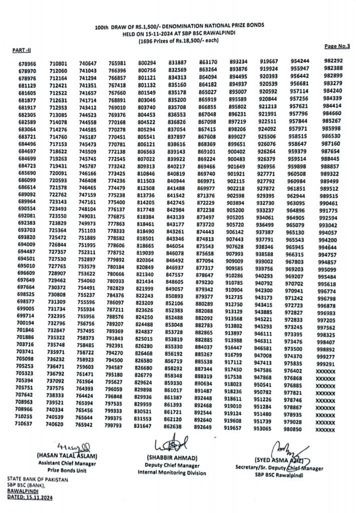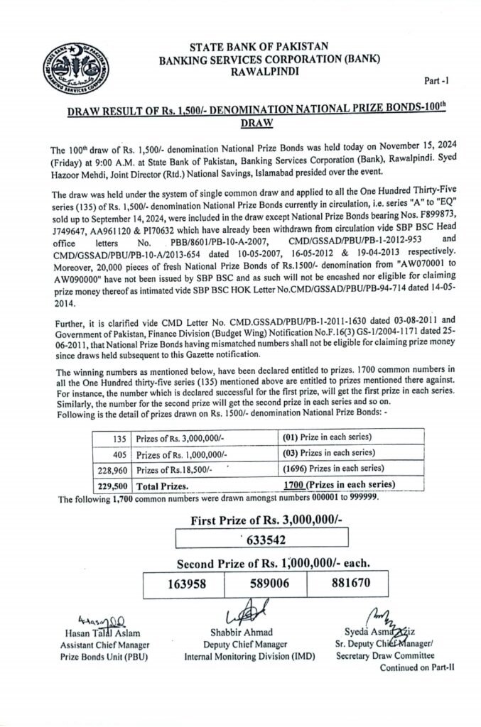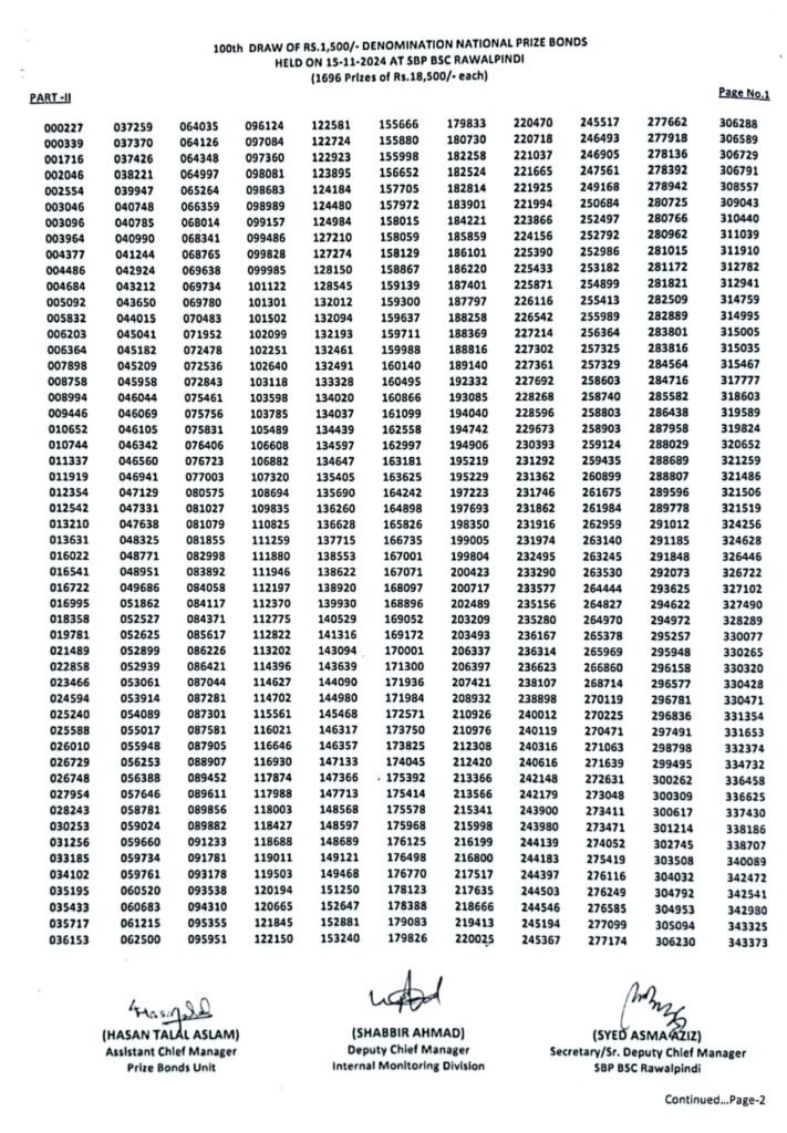 1500 prize bond list 2024 pdf download. Rs. 1500 Prize Bond List – Draw No. 100 on November 15, 2024