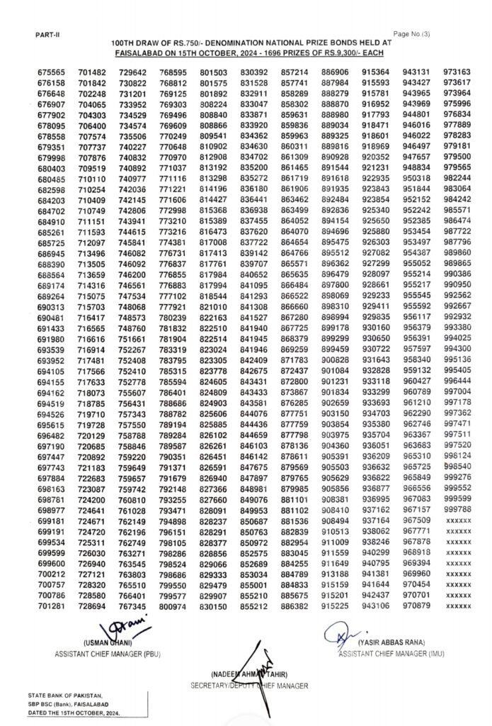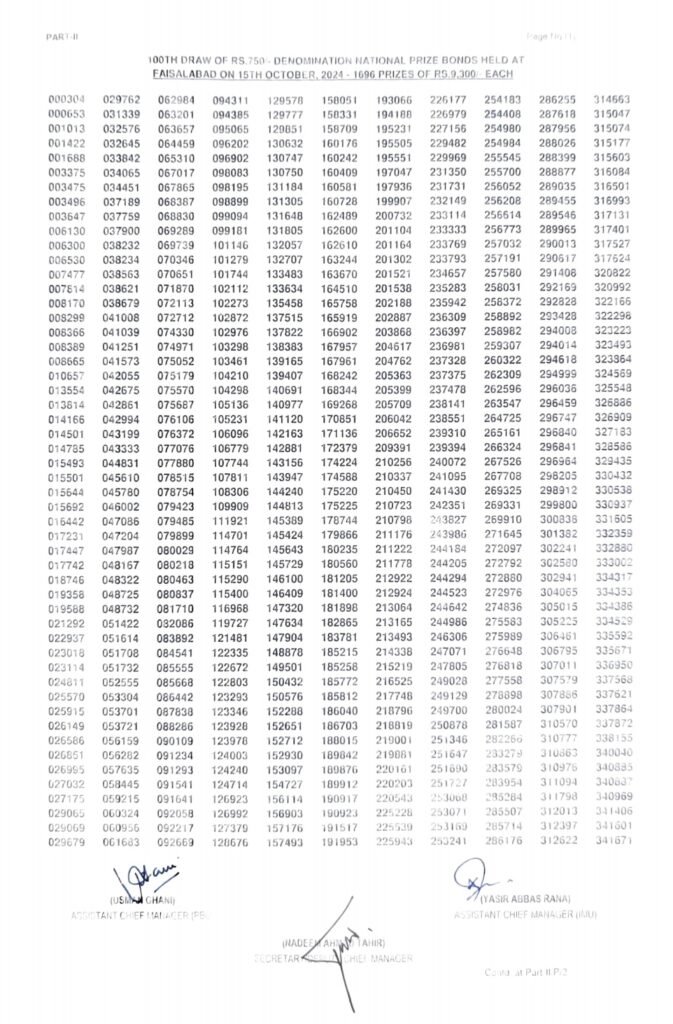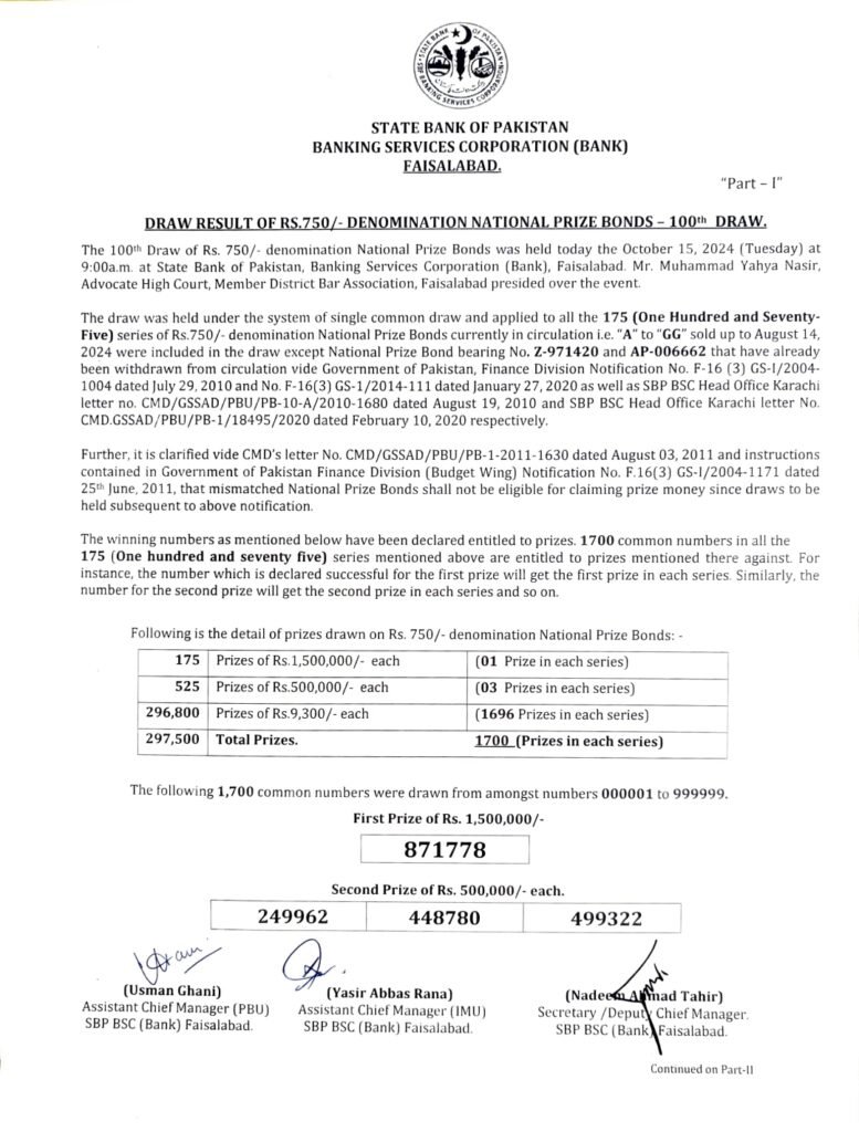 The 750 Prize Bond Draw No. 100, held on October 15, 2024, at the SBP BSC Faisalabad, is another eagerly awaited event for bondholders across Pakistan. As with every quarterly draw, participants are excited to see if their numbers have landed them one of the significant prizes. With the convenience of online result checking, bondholders are able to access their outcomes quickly, adding to the anticipation and thrill that surrounds these events.