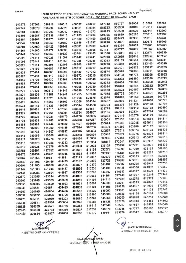 For a full list of winning numbers and to check your prize bond status online, the complete 750 Prize Bond Draw No. 100 list is available.