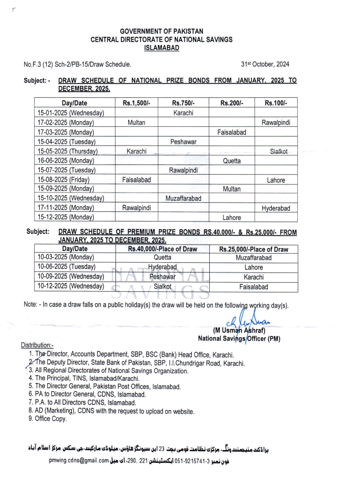 Prize Bond Draw Schedule 2025
